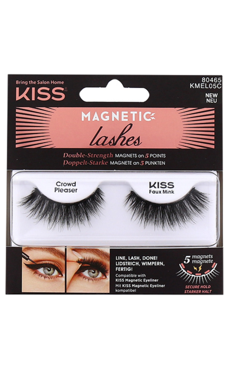 Pasiruoškite pakeisti blakstienų klijavimo būdą! Dabar dirbtines blakstienas galite užklijuoti lengviau nei bet kada anksčiau. Tiesiog ištepkite KISS Magnetic Eyeliner (nepridedamas) palei blakstienų liniją, leiskite jam išdžiūti, tada uždėkite magnetines blakstienas. Šios specialiai sukurtos juostelinės blakstienos tarsi magnetas prilimpa prie voko kaip klijai-tačiau klijų nereikia! Kiekviena blakstiena turi 5 dvigubo stiprumo magnetus, kurie prilimpa prie magnetinio akių pieštuko ir išlieka vietoje ilgą laiką.