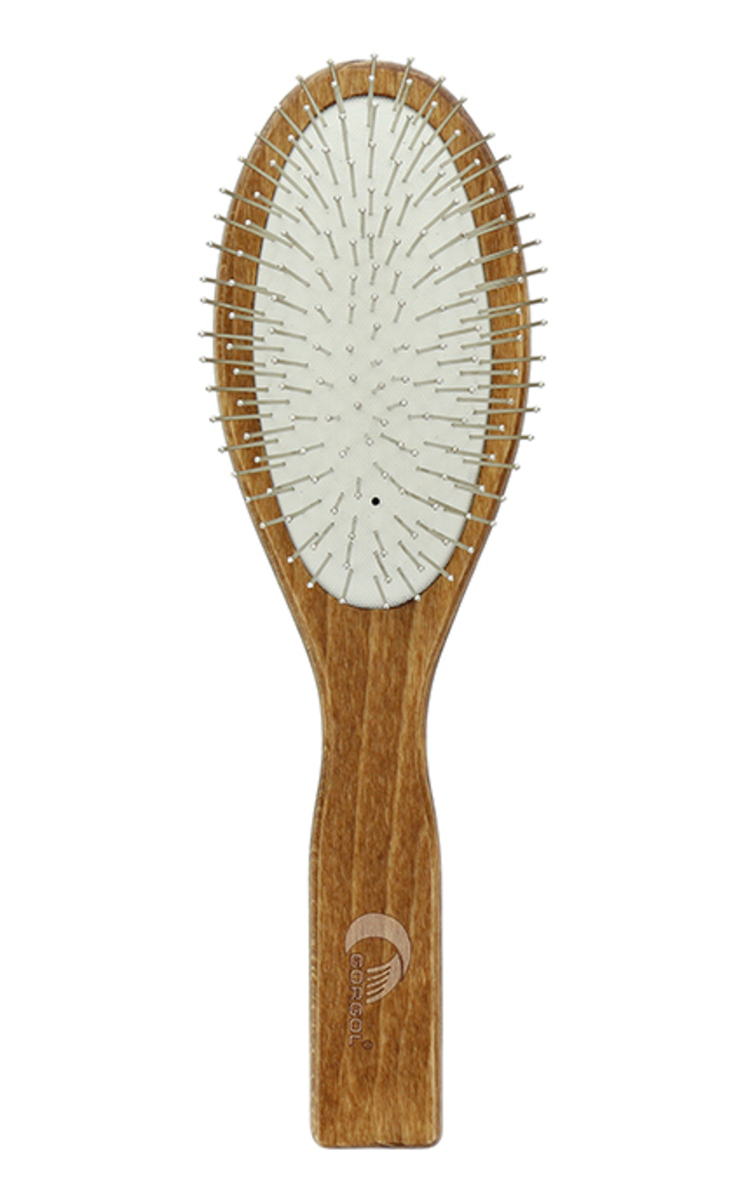 Medinis šepetys švelniai šukuoja visų tipų plaukus ir pakelia nuo šaknų, nepešdamas ir nepažeisdamas jų, o šerelių galai maloniai masažuoja galvos odą.