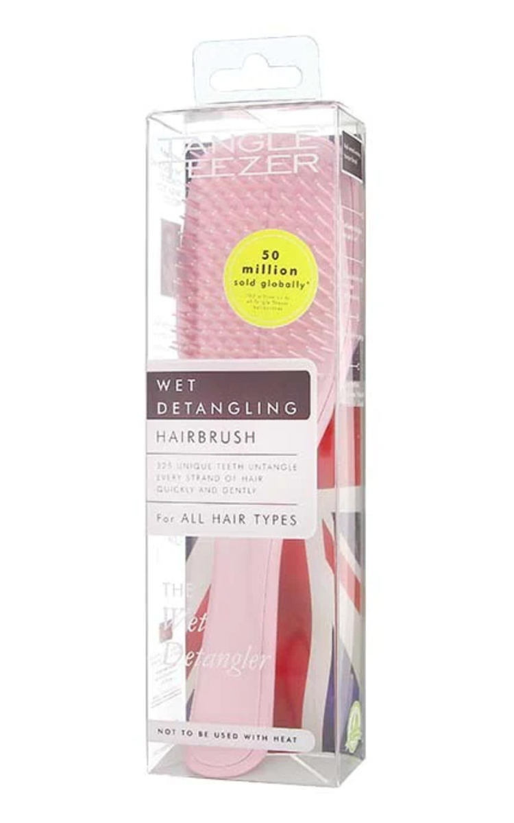 Šepetys plaukams Tangle Teezer Wet Detangling Hairbrush Millennial Pink – Tai gerai pasaulyje žinomo prekės ženklo “Tangle Teezer” specialiai sukurtas šepetys, kuris yra aukščiausios klasės įmonės modelis, sukurtas žmonėms, vertinantiems ne tik ergonomiką ir ilgaamžiškumą, bet ir stilių bei eleganciją. Šepetys su patogia rankena, turi skirtingo ilgio šerelius, kurie pagaminti iš aukštos kokybės plastiko pagal inovatyvią technologiją ir jie yra tuščiaviduriai, todėl šereliai išlieka labai lankstūs bei su smailiais galiukais, kurie leidžia šukuoti net šlapius plaukus jų nesulaužant ir nepažeidžiant. Dviejų pakopų šereliai yra skirtingų dydžių, todėl jie tolygiai slysta per plaukus, neįsipainioja bei nepeša. Efektyviai iššukuoja susivėlusius plaukus.