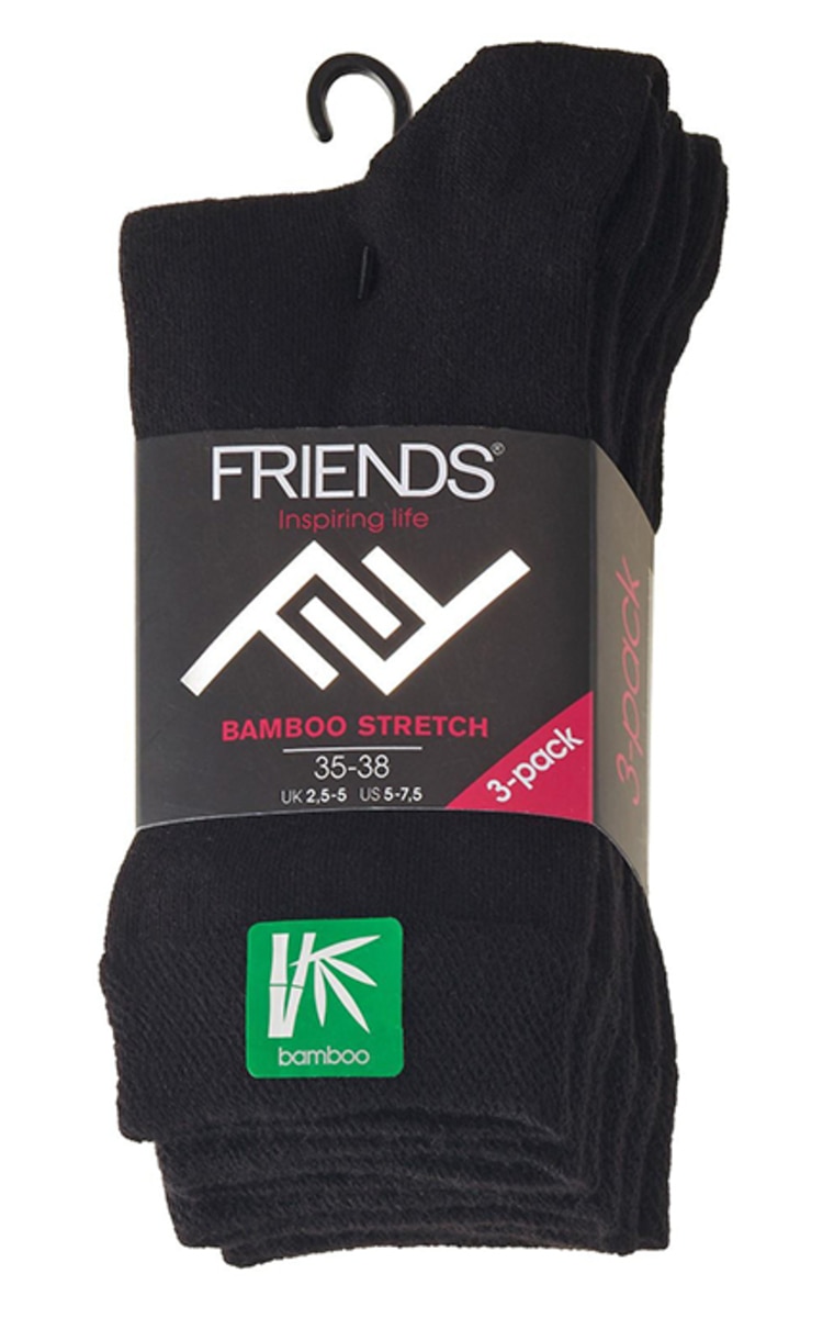 FRIENDS, moteriškos bambukinės kojinės, 35/38, JUODOS, 3 poros 35-38