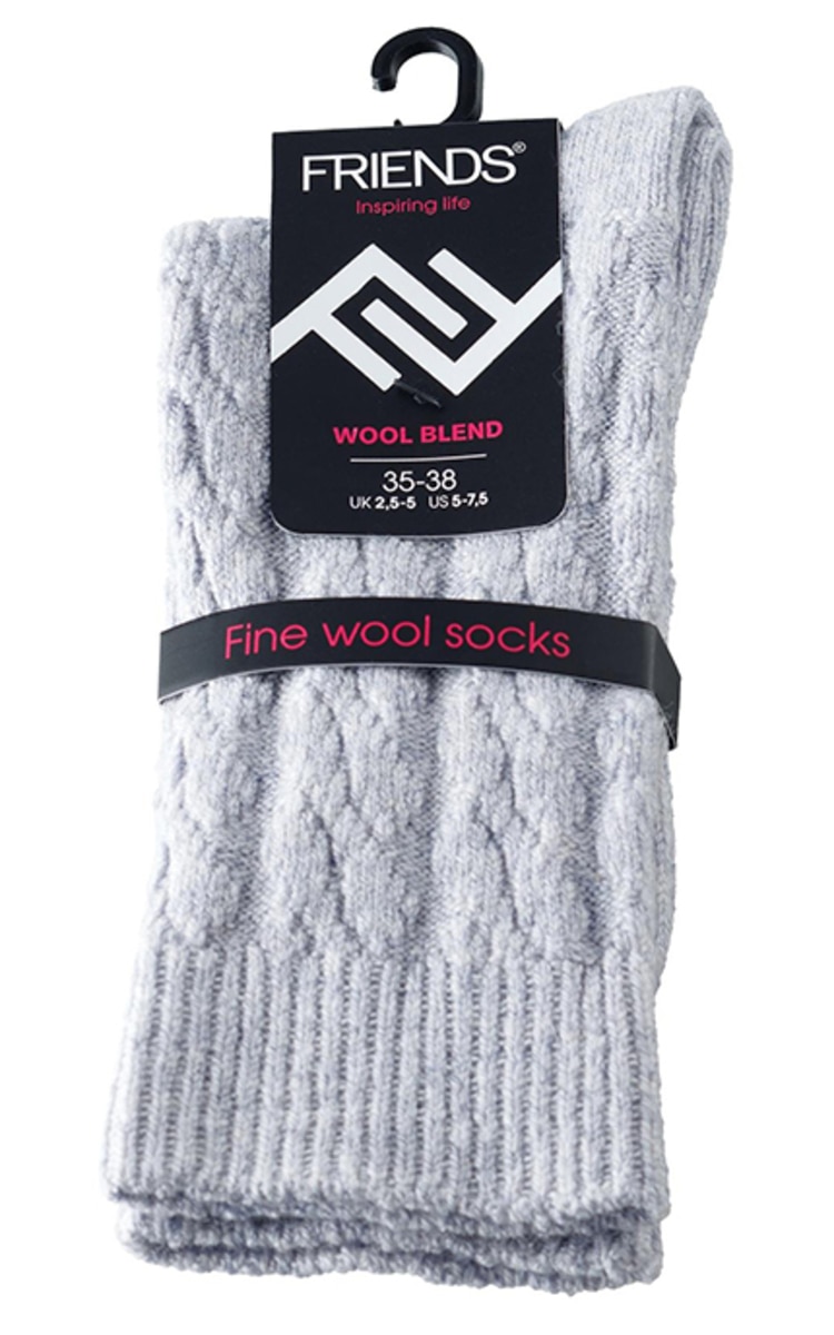 Šiltos, storos ir labai minkštos vilnonės kojinės moterims. Dekoruotos su gražiu, megztu raštu. Puikiai tinkančios įvairioms progoms ir idealus pasirinkimas šaltesniam sezonui.