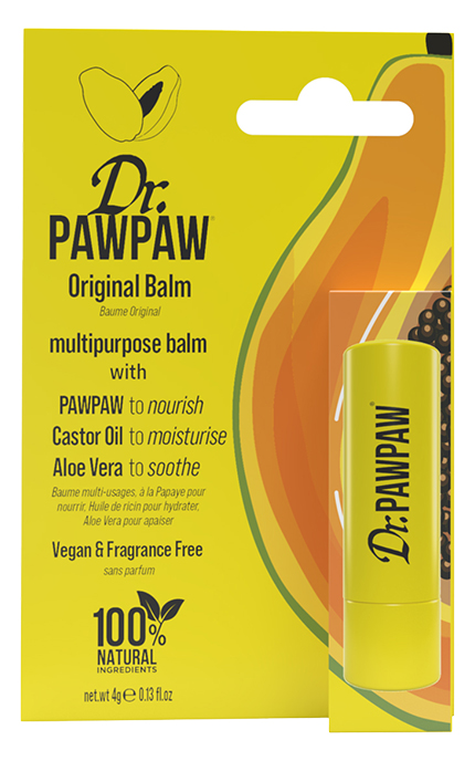 Leiskite savo lūpoms spindėti su „Dr. PAWPAW Original“ – mažuoju pieštuku, pasiruošusiu suteikti drėgmės ir švelnumo kiekvieną dieną! Šis mažas, bet galingas pagalbininkas drėkina, minkština ir suteikia komforto pojūtį vienu paprastu potėpiu. Formulė praturtinta papajos ekstraktu, kuris švelniai maitina lūpas, alaviju, kuris ramina ir suteikia malonaus komforto pojūtį, bei alyvuogių ir ricinos aliejais, kurie padeda palaikyti drėgmės pojūtį ir minkštumą. Bekvapis ir universalus, todėl tinka tiek kasdieniam naudojimui, tiek subtiliam makiažui. NAUDOJIMAS: tepkite lūpas kai norisi drėgmės, jaučiate sausumą ar tiesiog norite suteikti blizgesio.