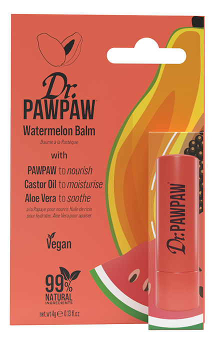 Lūpų gaiva su arbūzo prisilietimu. Šis lūpų pieštukas puikiai rūpinasi jūsų lūpomis: papajos ekstraktas jas maitina ir suminkština, alavijas ramina net sausėjančias vieteles, o alyvuogių ir ricinos aliejai drėkina, suteikdami lūpoms švelnumo. Vos juntamas arbūzo aromatas kiekvieną tepimą paverčia malonia tropine patirtimi. . Dr. PAWPAW Watermelon – tai ne tik lūpų priežiūra, tai kasdienė mažytė prabanga jūsų lūpoms. NAUDOJIMAS: tepkite lūpas kai norisi drėgmės, jaučiate sausumą ar tiesiog norite suteikti blizgespkite pagal poreikį – lūpos bus glotnios bei švelnios.