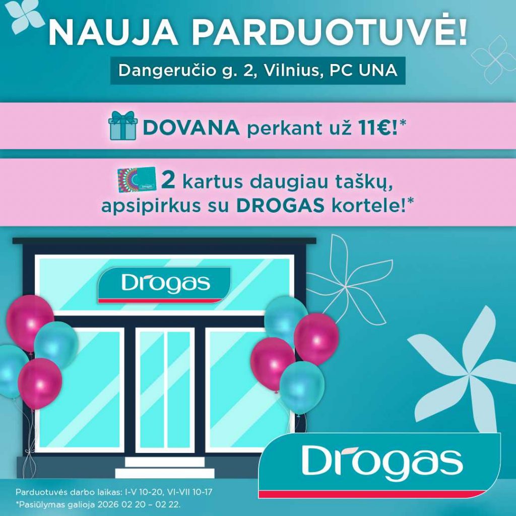 Džiugios naujienos, DROGAS naujos parduotuvės atidarymas Vilniuje! Vasario 20 d., penktadienį, lauksime tavęs mūsų naujoje parduotuvėje Vilniuje, PC UNA adresu Dangeručio g. 2 nuo 10 val. iki 20 val.