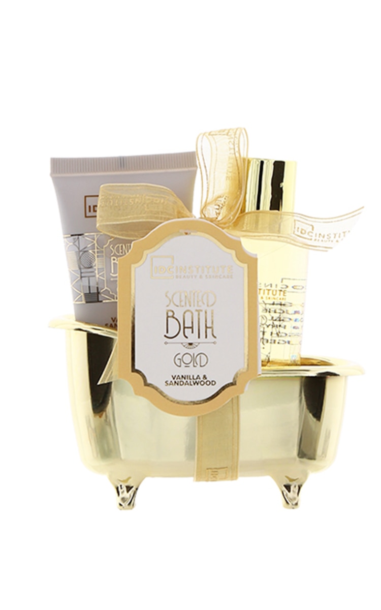 Atsiliepimai IDC INSTITUTE, SCENTED GOLD MINI, vonios rinkinys, 2 pozicijos: 100 ml. dušo gelis, 50 ml. kūno losjonas
