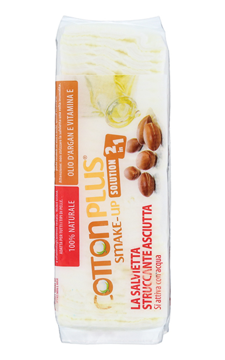 COTTON PLUS , 2IN1 ARGAN, vatos diskeliai makiažui valyti su arganų aliejumi, 60 vnt. 60 vnt.
