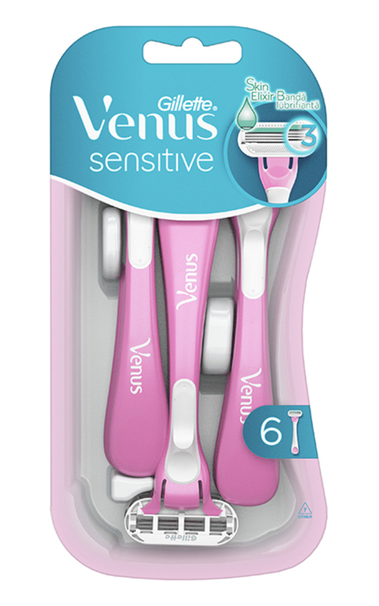 GILLETTE, VENUS SIMPLY3 SENSITIVE, vienkartiniai skustuvai, 6 vnt. 6 vnt.