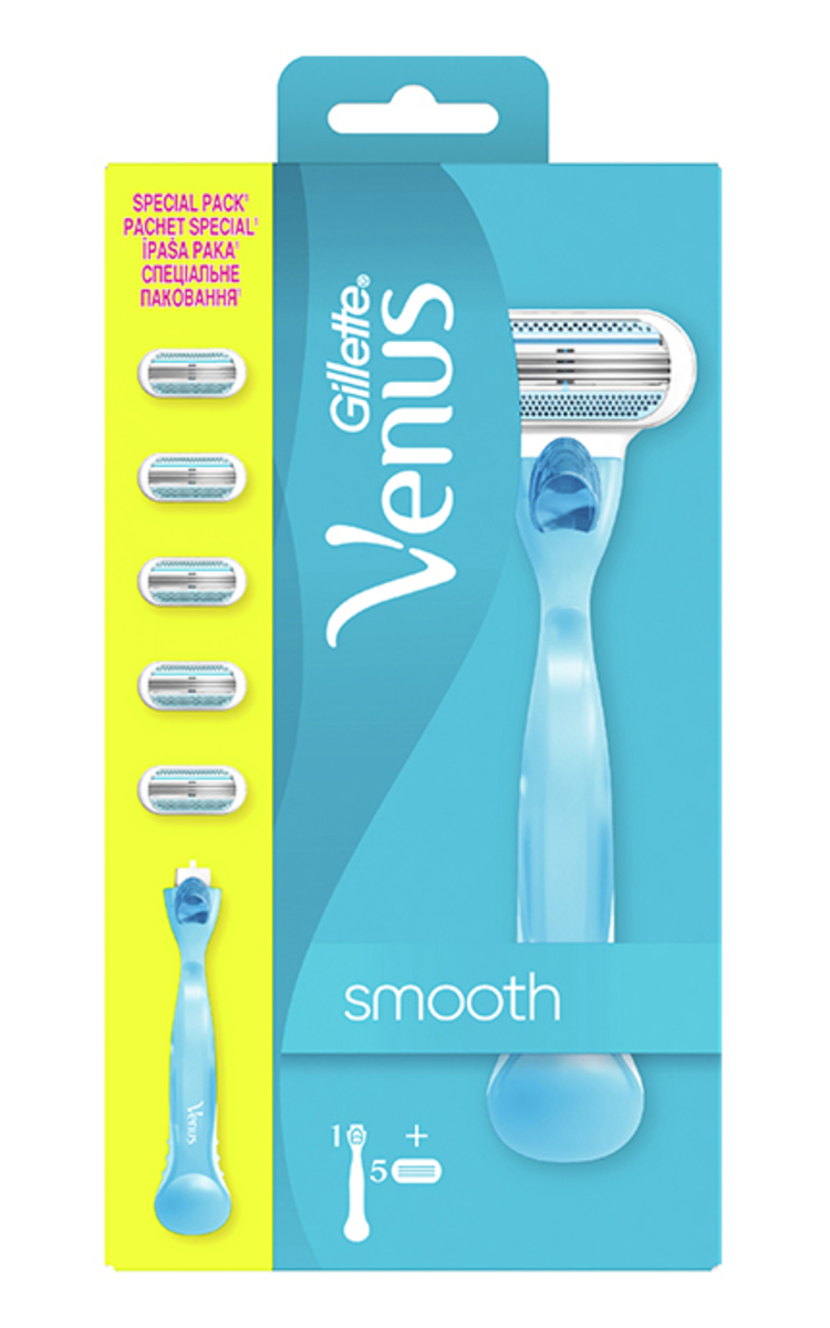 GILLETTE VENUS SMOOTH skustuvas moterims yra pirmasis moterims sukurtas 3 ašmenų skustuvas. Jis turi 3 ašmenis, kurie prisitaiko prie kūno linijų ir yra apgaubti apsauginėmis pagalvėlėmis, suteikiančiomis odai glotnumo ir užtikrinančiomis, kad būtų rūpestingai ir švariai nuskusta vienu judesiu. Be to, blunkanti mėlyna indikatoriaus juostelė parodo, kada optimalus „Venus“ skutimas nebeužtikrinamas. Geriausia naudoti su SATIN CARE skutimosi geliu.