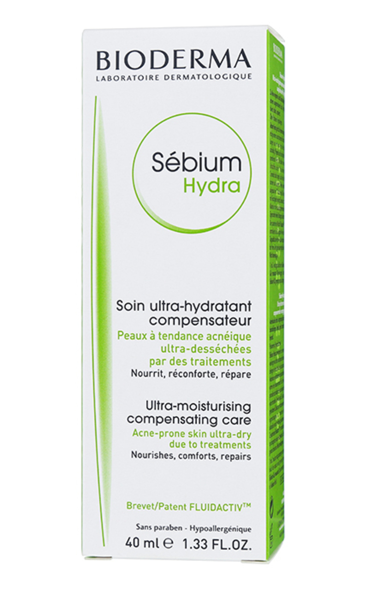 Kai kurios itin sausinančios priemonės sukelia stiprią deskvamaciją, dėl kurios oda įsitempia ir parausta. SEBIUM HYDRA neutralizuoja šį šalutinį poveikį ir užtikriną ilgalaikį odos atkūrimą, todėl procedūras galima tęsti. Maitinamosios ir drėkinamosios medžiagos sukuria apsauginę plėvelę, o ceramidai biologiškai atkuria odos barjerą. Oda drėkinama 24 valandas. Dirginimą slopinančių ypatybių turintys enoksolonas ir alantoinas ramina ir mažina paraudimą. Jūsų oda tampa švari ir švytinti, jaučiamas komforto pojūtis. Odos sausumas, pleiskanojimas ir paraudimas pastebimai sumažėja. Išskirtinis patentas FLUIDACTIV biologiškai reguliuoja riebalų kokybę ir apsaugo nuo užsikimšusių porų, dėl kurių atsiranda spuogų. Sodrios konsistencijos priemonė greitai įsigeria. Puikus makiažo pagrindas.