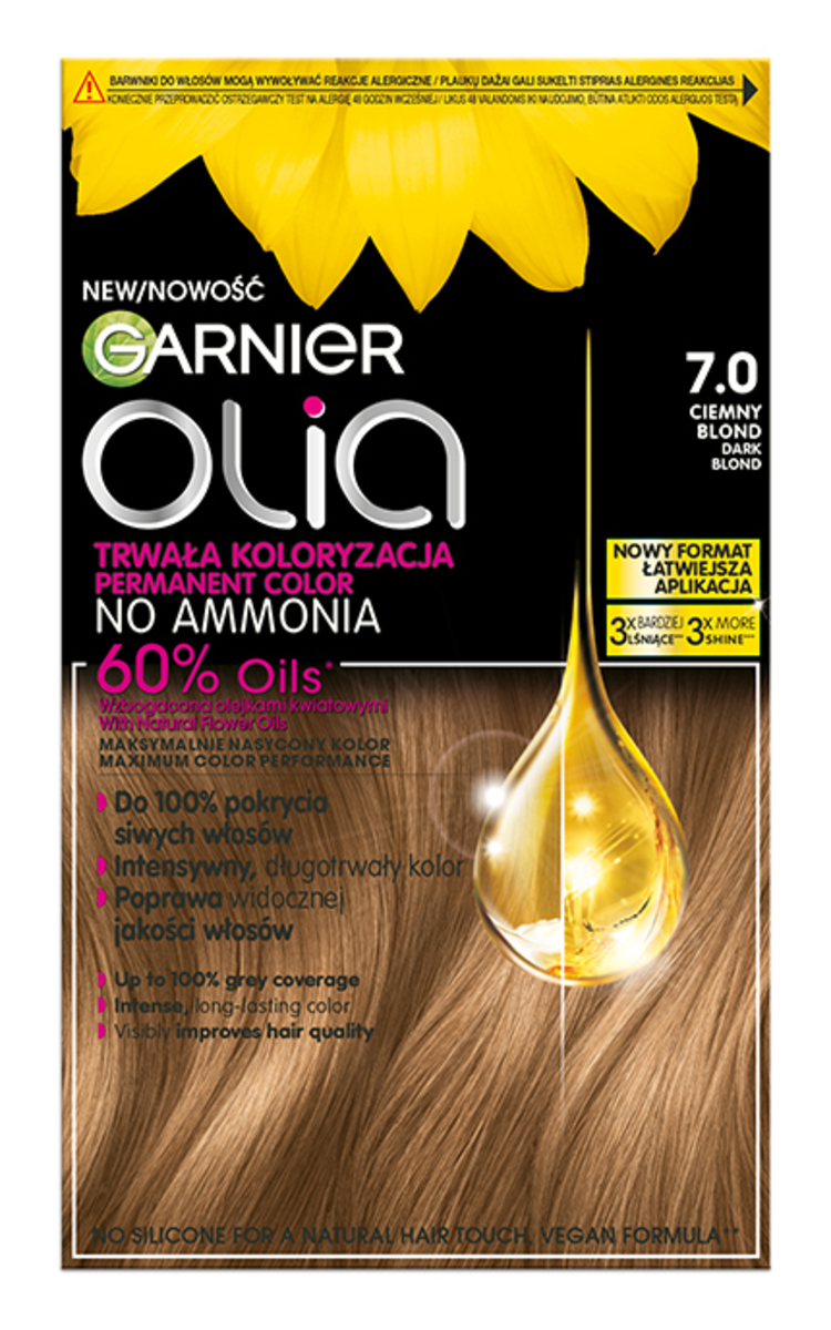 Atsiliepimai GARNIER, OLIA, ilgalaikiai aliejiniai plaukų dažai be amoniako, 7.0 DARK BLOND, 1 vnt.