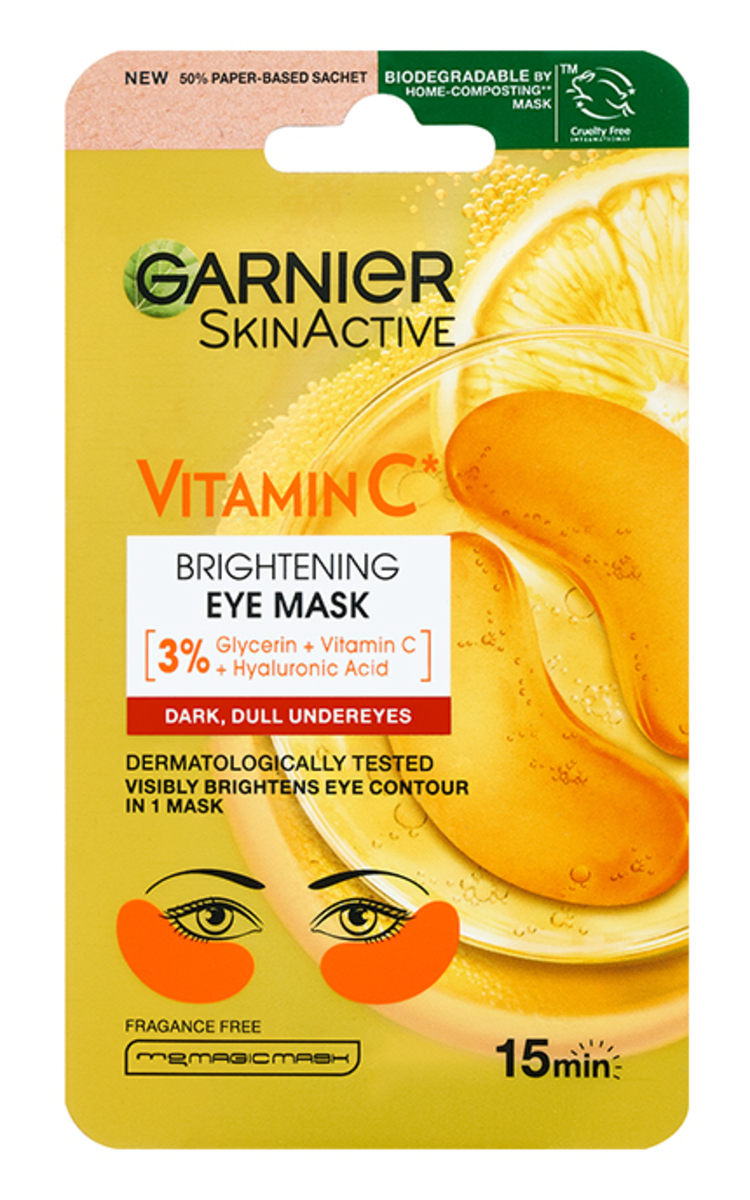 Garnier Vitamin C skaistinanti paakių kaukė: 3 % aktyviųjų ingredientų koncentracija su skaistinamuoju vitaminu C, drėkinamąja hialurono rūgštimi ir gliceroliu. Pastebimai skaistesnė paakių sritis jau po 1 kaukės. Panaudojus vieną kartą paakių zona atrodo atgaivinta ir pailsėjusi*. Po 4 savaičių tamsūs ratilai tampa mažiau pastebimi, o paakių zona skaistesnė*. Patikrinta dermatologų, bekvapė.