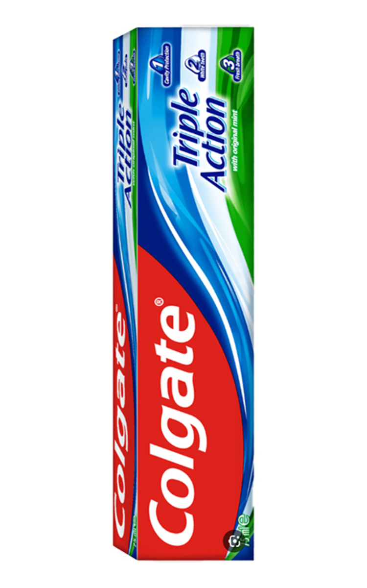 Colgate Triple Action Original Mint dantų pasta yra trigubo poveikio dantų pasta. Efektyviai gaivina burnos kvapą, padeda išlaikyti baltesnius dantis ir palaiko apsaugą nuo ėduonies. Jos dėka galėsite džiaugtis gaiviu kvapu, gražia šypsena ir sveikais dantimis.