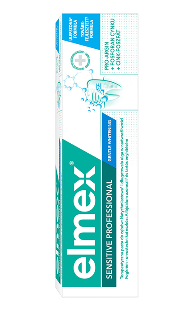 ELMEX SENSITIVE PROFESSIONAL švelniai balinanti, dantų pasta su PRO-ARGIN technologija jautriems dantims. Dantų pasta pasižymi unikalia ir patentuota PRO-ARGIN technologija, kurios dėka žymiai greičiau sumažinamas dantų skausmas. Pastoje esančios dalelės ne tik sumažina skausmą, tačiau ir balina dantis.