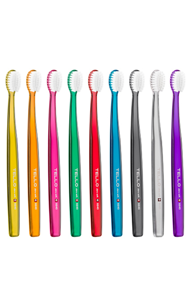 TELLO, dantų šepetėlis 6240, labai minkštas, 1 vnt., (ĮVAIRIŲ SPALVŲ) 1 vnt.