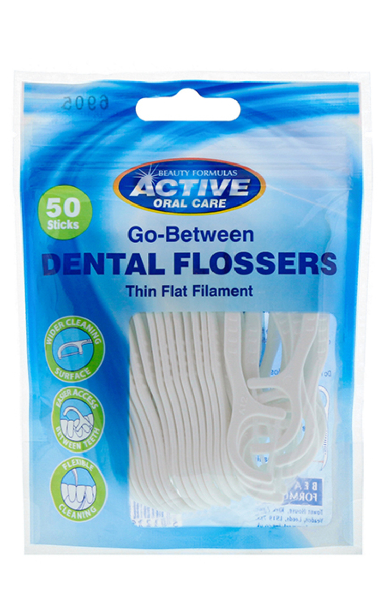 BEAUTY FORMULAS, ACTIVE ORAL CARE, vaškuoti siūlai tarpdančiams valyti, 50 vnt. 1 vnt.
