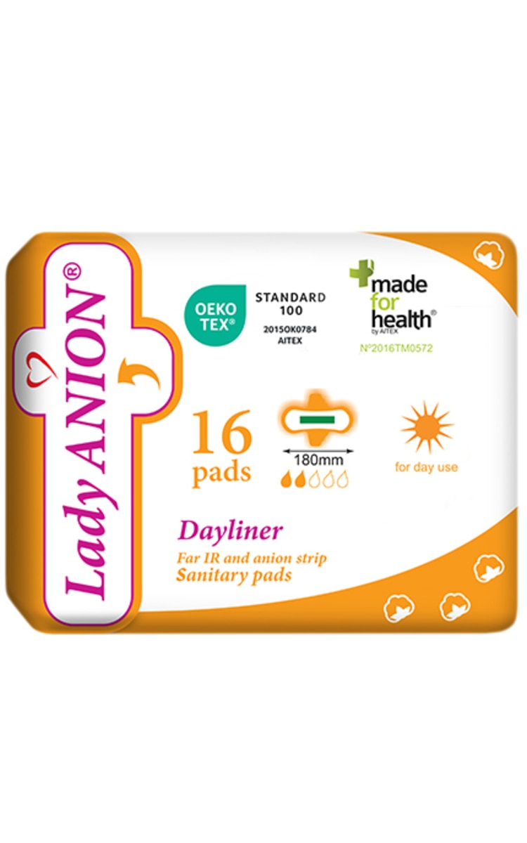 Įklotų su sparneliais LADY ANION DAYLINER formulės sudėtyje meilė Jums abiems: gamtai ir Tavo gerai savijautai. Įklotai su sparneliais LADY ANION DAYLINER pagaminti be šių kenksmingų medžiagų: pesticidų, sunkiųjų metalų, fenolių, alergijas sukeliančių dažų. Privalumai: