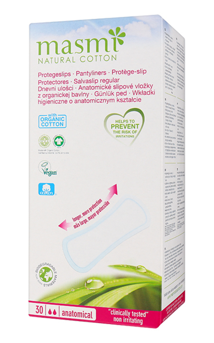 MASMI ekologiški medvilniniai kasdieniai įklotai. Pagaminti iš sertifikuotos ekologiškos hipoalerginės medvilnės, kuri maksimaliai sumažina alergijų ir suerzinimo riziką. Daugelis ginekologų ir akušerių rekomenduoja naudoti natūralios medvilnės intymios higienos produktus.