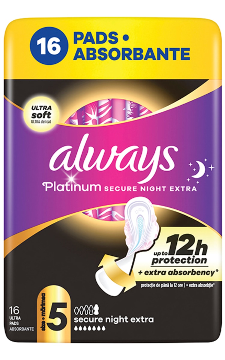 ALWAYS, PLATINUM SECURE, NIGHT EXTRA, higieniniai paketai, S5, 16 vnt.