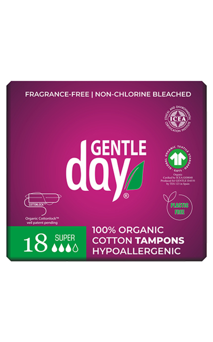 GENTLE DAY, SUPER TAMPONS, 100% ORGANIC COTTON, tamponai, 18 vnt. 18 vnt.