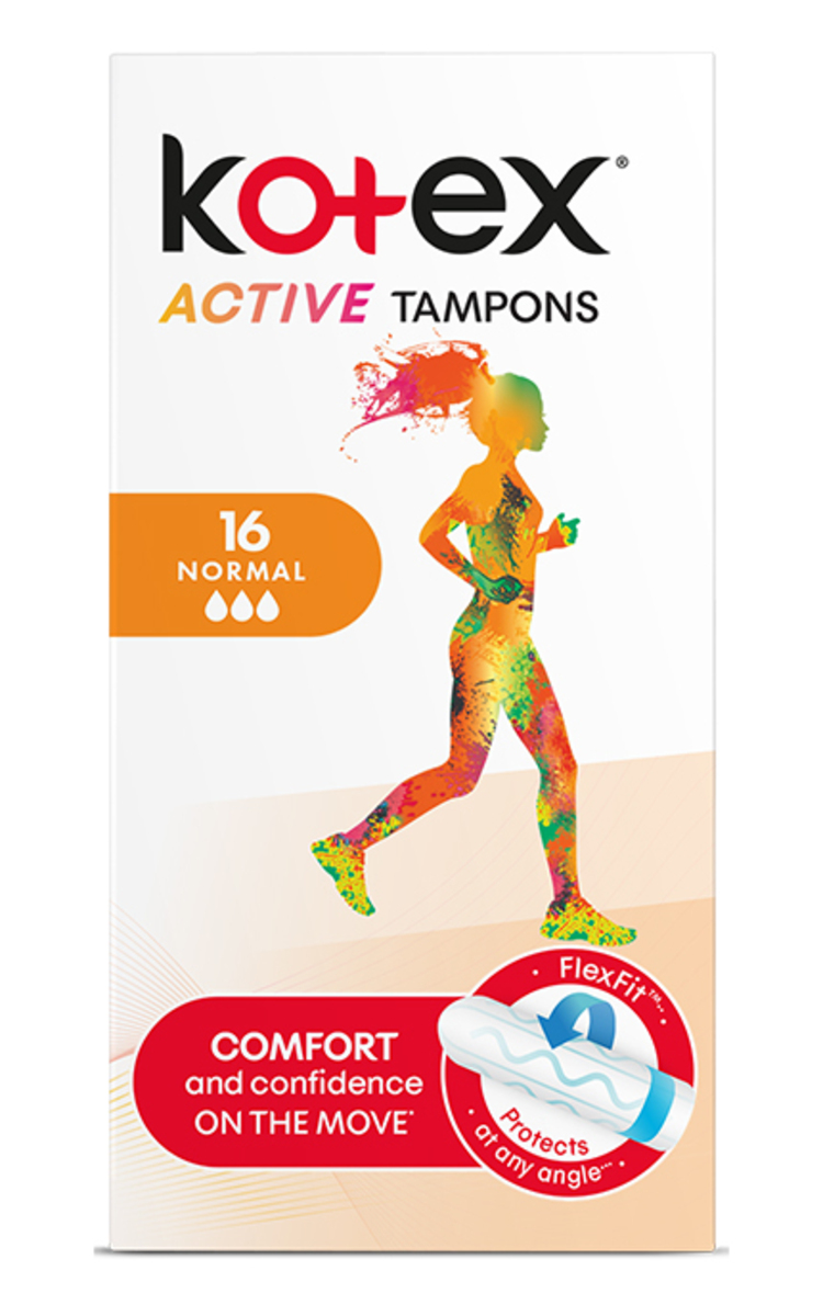 Tamponai Kotex Active Normal prisitaiko prie Jūsų kūno ir apsaugo bet kokioje pozoje. Švelniai išsiplečia, taip prisitaikydami prie Jūsų kūno ir užtikrindami visišką apsaugą. Švelnus paviršius ir apvalus galiukas leidžia naudotis lengvai ir patogiai.