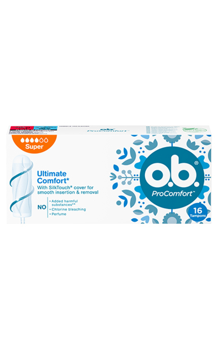 o.b.® ProComfort®“ su „Dynamic Fit®“ technologija ir „SilkTouch®“ paviršiumi maksimaliam komfortui* ir patikimai apsaugai užtikrinti: 1) Greitai ir švelniai išsiplečia bei prisitaiko prie jūsų kūno. 2) Unikalūs vingiuoti grioveliai padeda efektyviai paskirstyti skystį tampono viduje. 3) Glotnus „SilkTouch®“ paviršius palengvina įdėjimą. *„o.b.“ asortimente. „o.b.®“ sukūrė moteris ginekologė. Popierius iš patikimų šaltinių; perdirbtas popierius (min.75%). 100% atsinaujinanti energija naudojama mūsų pagrindinėje gamybos vietoje. Ginekologiškai patikrinta. Sudėtyje neturi žalingų medžiagų**, kvapiklių, nebalinta chloru. **išbandytas ir patvirtintas, kaip atitinkantis „OEKO-TEX ® STANDARD 100“ ribas.