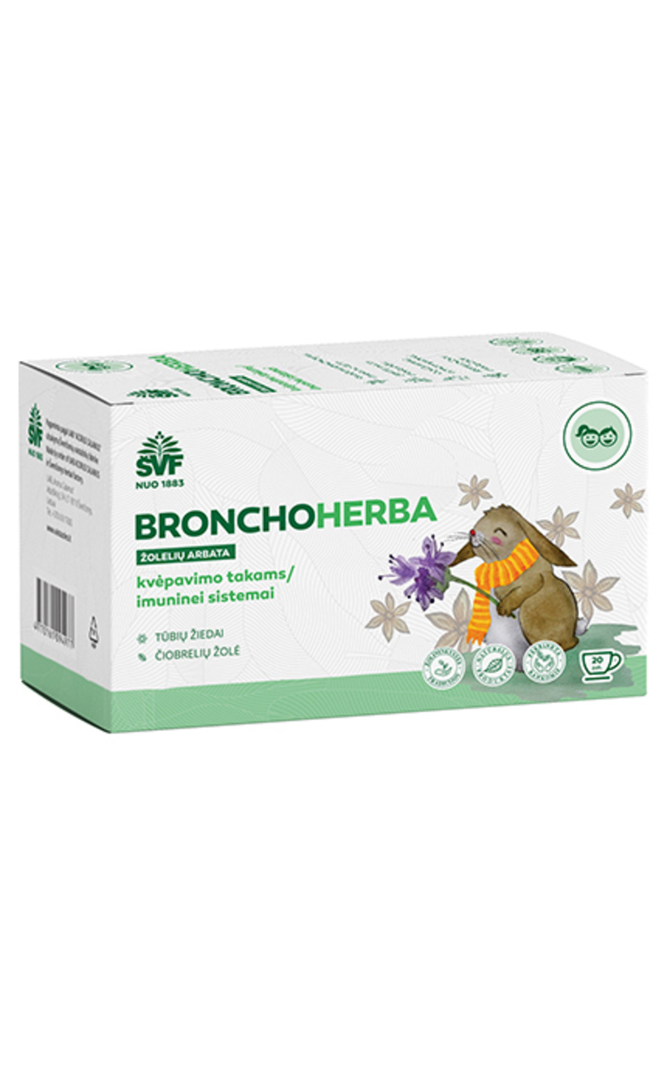 ŠVENČIONIŲ VAISTAŽOLĖS, BRONCHOHERBA VAIKAMS, žolelių arbata, 20 vnt. x 1,5 g 30 g