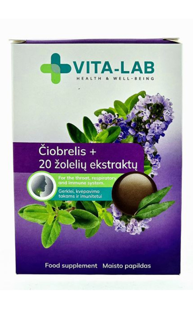 Atsiliepimai VITA-LAB, kietosios pastilės gerklei ČIOBRELIS + 20 žolelių ekstraktų, 12 vnt. x 2,5 g.