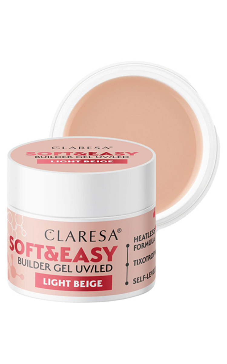 CLARESA, SOFT & EASY, nagų priauginimo gelis Light Beige, naudojamas su UV LED lempomis, 1 vnt. 15 g