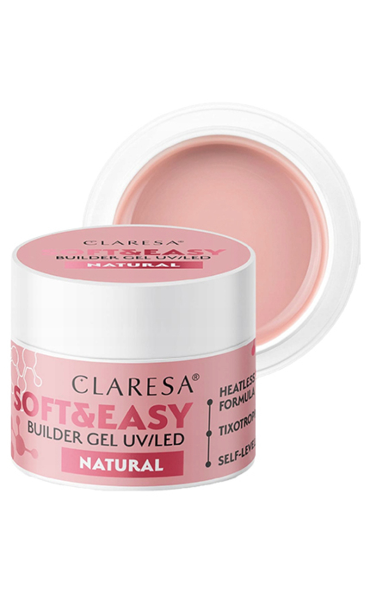 CLARESA, SOFT & EASY, nagų priauginimo gelis Natural, naudojamas su UV / LED lempomis, 1 vnt. 12 g