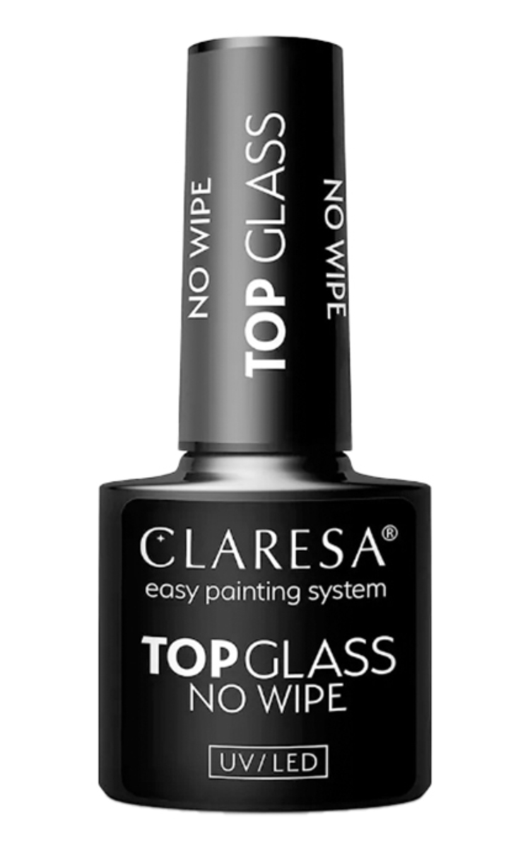 CLARESA, TOP GLASS NO WIPE UV LED, hibridinis nagų lako viršutinis sluoksnis, 1 vnt. 5 g