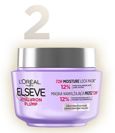 Elvital Hyaluron Plump drėkina ir prisotina plaukų skaidulas, todėl plaukai atrodo pilnesni ir storesni.