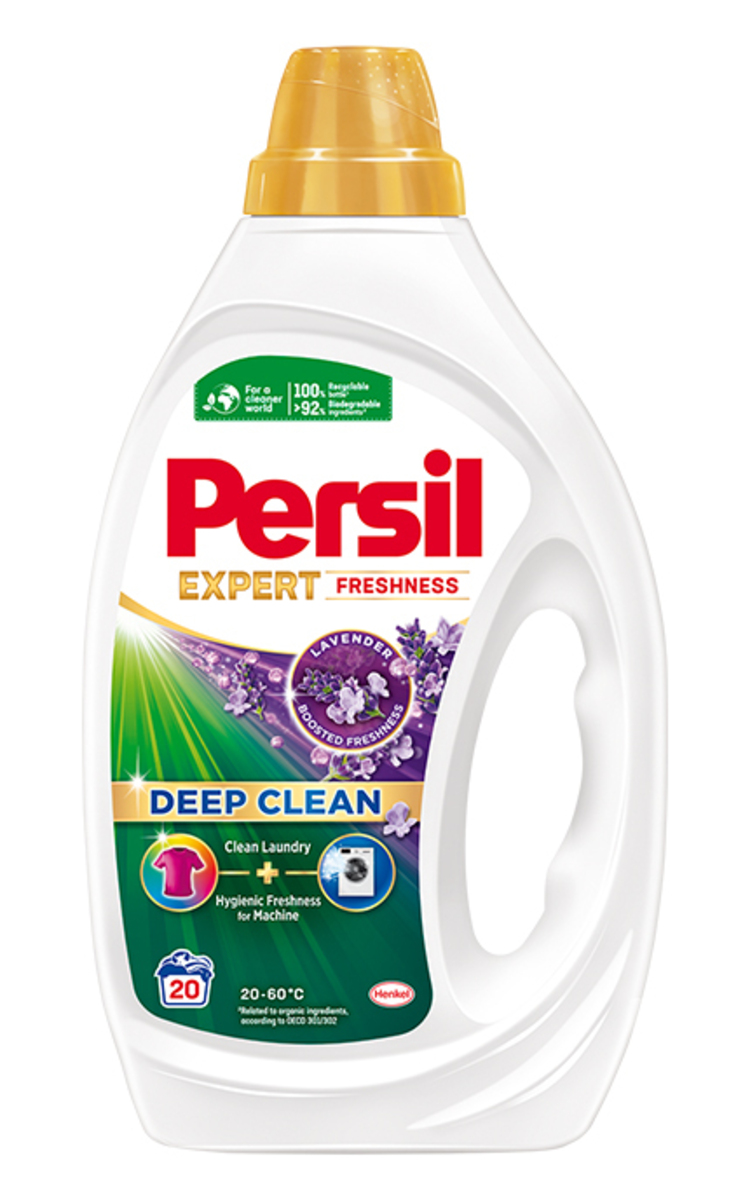 „Persil Gel Lavander" giliai išskalbia spalvotus skalbinius bei užtikrina higienišką gaivą skalbyklei. Galinga formulė prasiskverbia giliai į pluoštus jų nepažeisdama, pašalina net sunkiausiai įveikiamas dėmes ir išsaugo ryškias spalvas. Dabar ji dar ir patobulinta, kad patektų dar giliau į skalbimo mašiną ir kovotų su blogais iš jos sklindančiais kvapais. Švaresniam pasauliui: gelis „Persil Gel Lavander" susideda iš 92% bioskaidžių ingredientų* ir pateikiamas 100% perdirbamame butelyje. Galingas medžiagų derinys veiksmingas net ir žemoje temperatūroje. *Susiję su ekologiškais ingredientais pagal OECD 301/302.