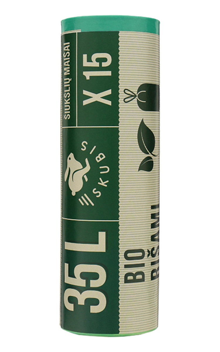 Greitai suyrantys šiukšlių maišai SKUBIS yra draugiški aplinkai. Dėl D2W priedo, šie šiukšlių maišai nekenkia aplinkai ir visiškai suyra per 18-24mėn. Įprasti šiukšlių maišai suyra tik po 400metų. Degradacijos (suirimo) procesas prasideda natūraliomis lauko sąlygomis, kai pradeda veikti šilumos drėgmės, saulės poveikis. Žalios spalvos.