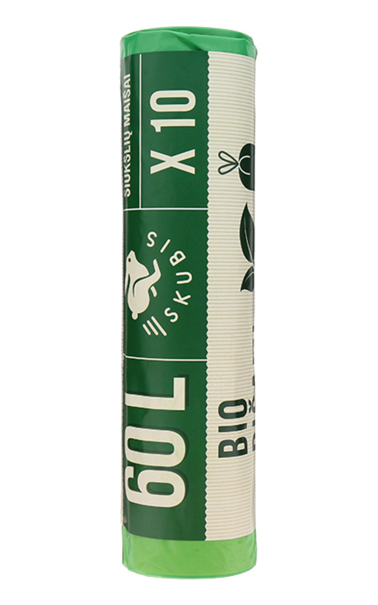 Greitai suyrantys šiukšlių maišai SKUBIS yra draugiški aplinkai. Dėl D2W priedo, šie šiukšlių maišai nekenkia aplinkai ir visiškai suyra per 18-24mėn. Įprasti šiukšlių maišai suyra tik po 400metų. Degradacijos (suirimo) procesas prasideda natūraliomis lauko sąlygomis, kai pradeda veikti šilumos drėgmės, saulės poveikis. Žalios spalvos.