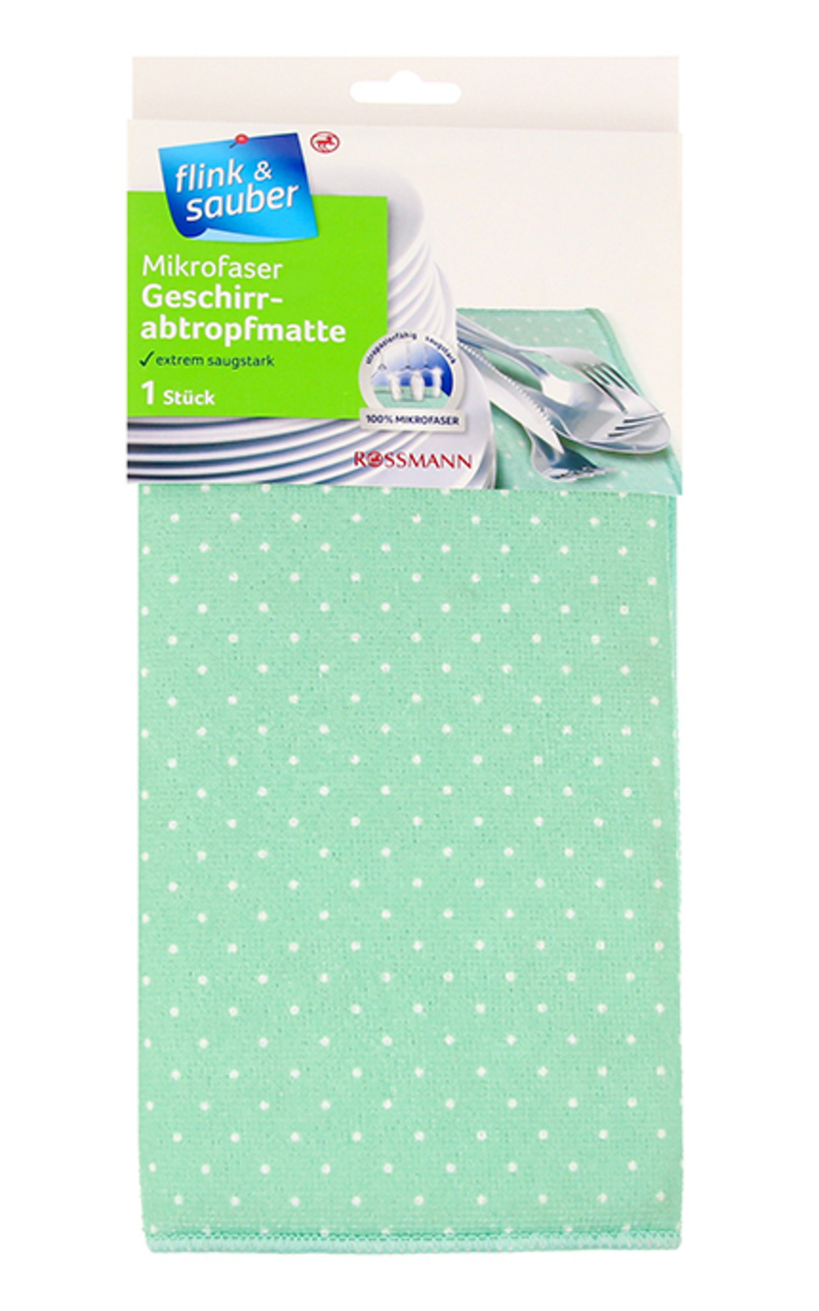Mikropluošto kilimėlis išplautiems indams sausinti. Kilimėlio matmenys: apie 33 x 50 cm.Puikiai tinka patiesti po išplautais indais, sugeria varvantį vandenį ir apsaugo paviršius nuo įbrėžimus. Puikiai tinka indams, taurėms ar puodams šluostyti, nebraižo ir išblizgina.