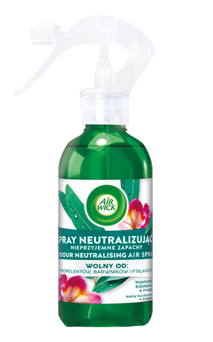 Atsiliepimai AIR WICK, AIR SPRAY RAINY EUCALYPTUS & FREESIA, purškiamasis oro gaiviklis atogrąžų eukaliptų ir frezijų kvapo, 237 ml.