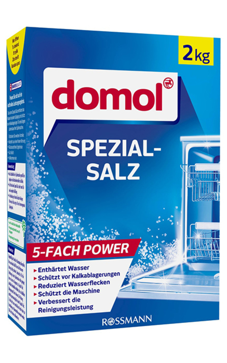 Speciali druska DOMOL minkština vandenį kiekvieno skalavimo metu ir apsaugo nuo kalkių nuosėdų. Kad jūsų indaplovė veiktų ilgiau. 5 poveikių: minkština vandenį, saugo nuo kalkių nuosėdų, mažina vandens paliekamas dėmes, saugo indaplovę ir padidina valomąją galią.