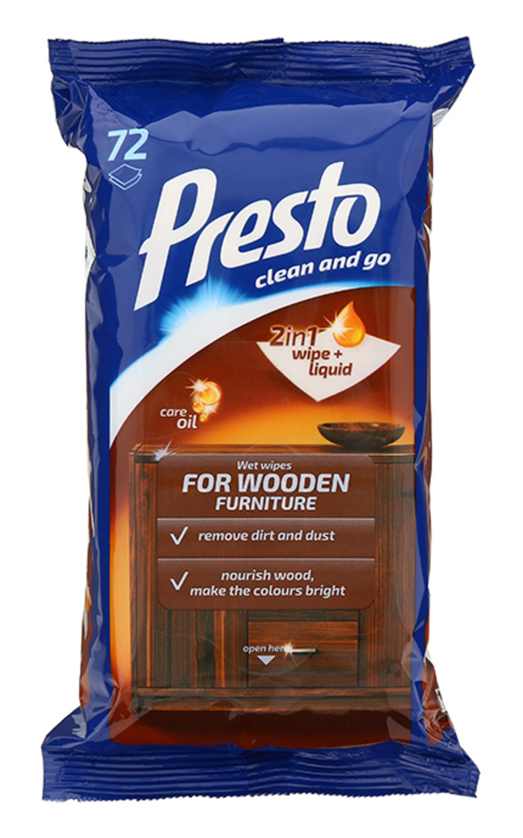 PRESTO CLEAN, drėgnos servetėlės mediniams baldams, 72 vnt. 72 vnt.
