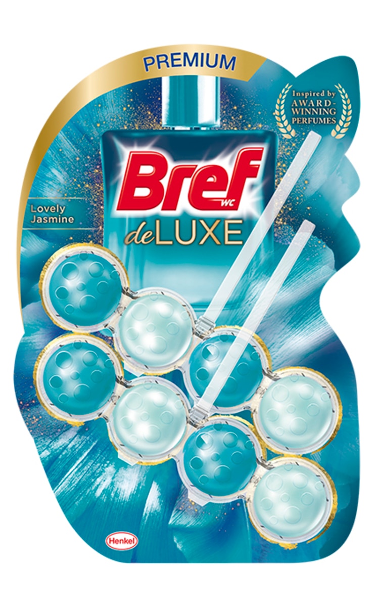Kietas tualeto valiklis-gaiviklis BREF DELUXE – tai elegantiški ir subtilūs aukščiausios kokybės kvapai, įkvėpti puikių kvepalų aromatų. 4 poveikiais pasižymintis junginys: aukščiausios kokybės aromatas, veiksmingos valomosios putos, apsauga nuo kalkių ir apsauga nuo nešvarumų.