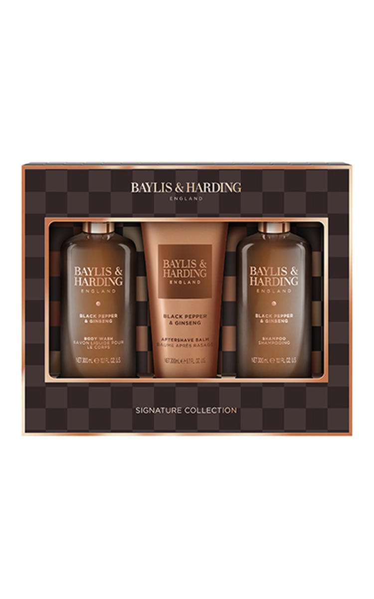 Atsiliepimai BAYLIS & HARDING, BLACK PEPPER & GINSENG MEN'S, LUXURY BATHING TRIO, dovanų rinkinys, 1 vnt.