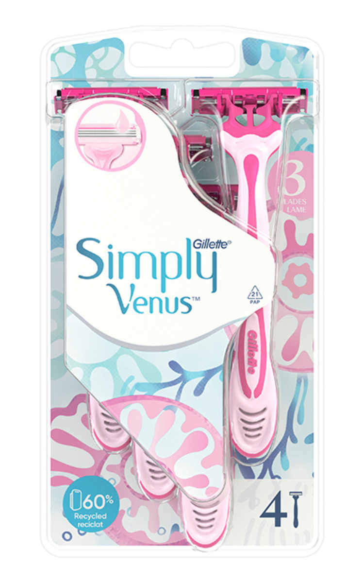 GILLETTE, VENUS SIMPLY3, vienkartiniai skustuvai, 4 vnt. 1 vnt.