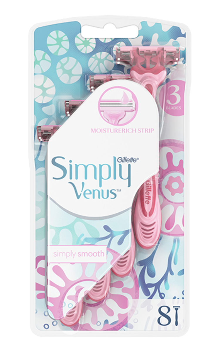 GILLETTE VENUS SIMPLY3 vienkartinis skustuvas moterims turi 3 ašmenų paslankią galvutę, „Moisture Rich“ juostelę, palengvinančią skustuvo slydimą, ir patogų kotelį. Geriausia naudoti su SATIN CARE skutimosi geliu.
