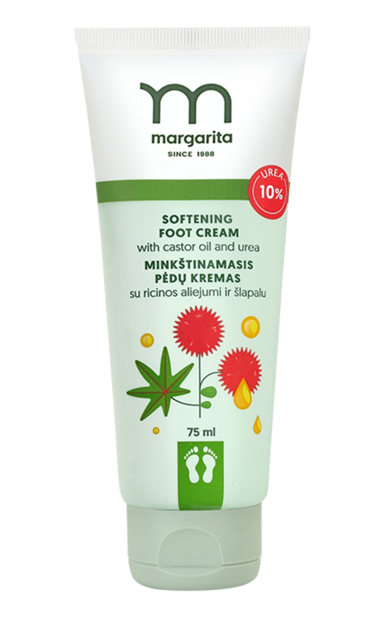 MARGARITA, minkštinamasis pėdų kremas su ricinos aliejumi ir šlapalu, 75 ml 1 vnt.