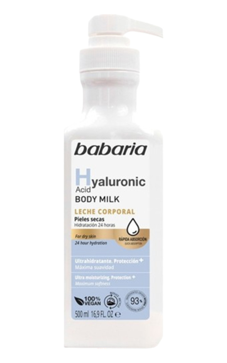Kūno pienelis HYALURONIC ACID. 24 val. drėkinimas / Sausai odai / 93% natūralios kilmės ingredientų. Giliai drėkina odą ir suteikia jai lygesnę struktūrą. Suformuoja ant odos apsauginę plėvelę, kad būtų išvengta dehidratacijos. Pienelio tekstūra ypač lengva, todėl galima apsirengti iškart po jo panaudojimo.