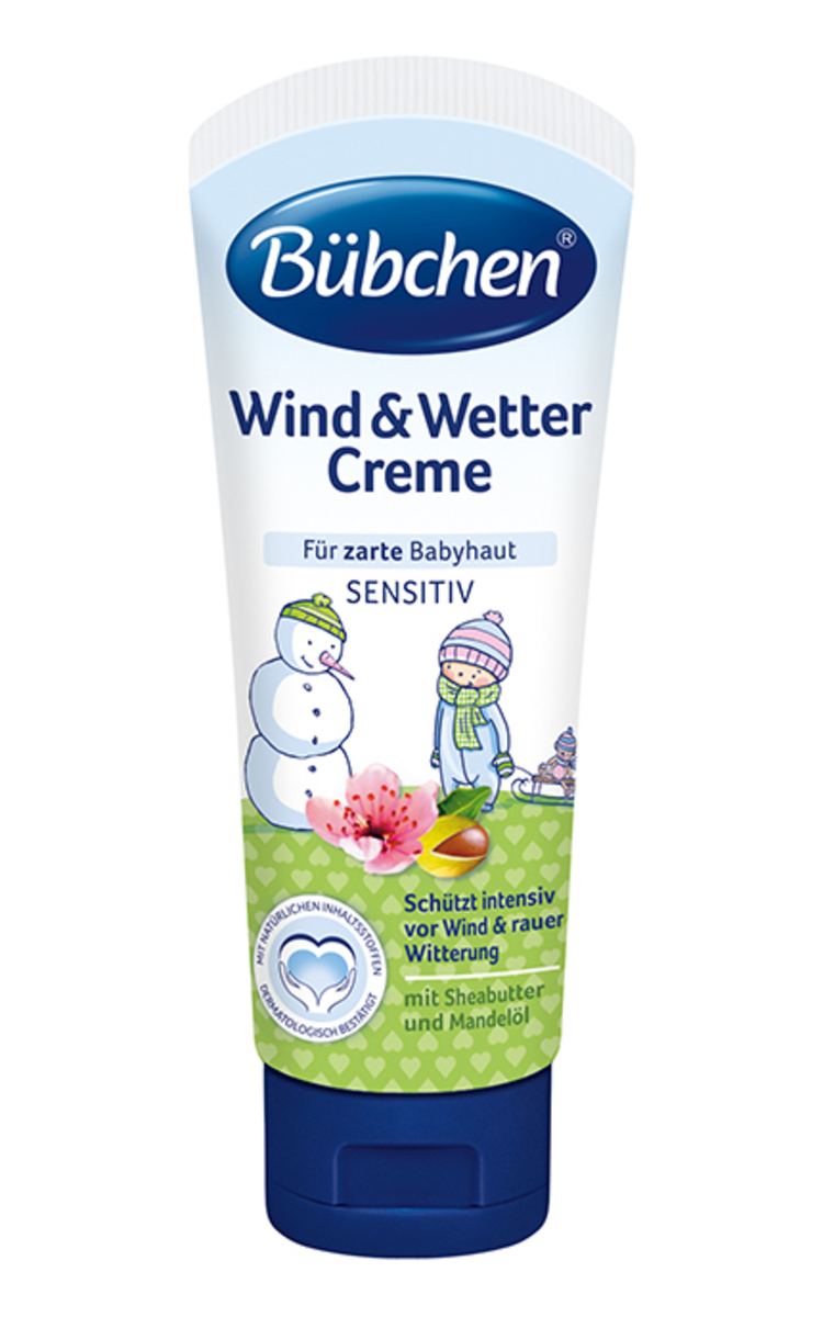 Apsauginis riebios konsistencijos kremas maitina švelnią ir jautrią mažylio odą, patikimai saugo ją nuo šalčio, drėgmės ir vėjo. Aktyvūs komponentai neleidžia drėgmei pasišalinti iš odos ir saugo ją nuo išsausėjimo. Su kompleksu “Bubchen -Aktyvi Odos Apsauga”. Migdolų, simondsijų aliejus ir taukmedžio sviestas minkština odą, pantenolis ir vitaminas E, ramunėlės mažina sudirgimą, o bičių vaškas sukuria ant odos ploną, orui pralaidžią apsauginę plėvelę. Skirtas naudoti nuo pat gimimo.