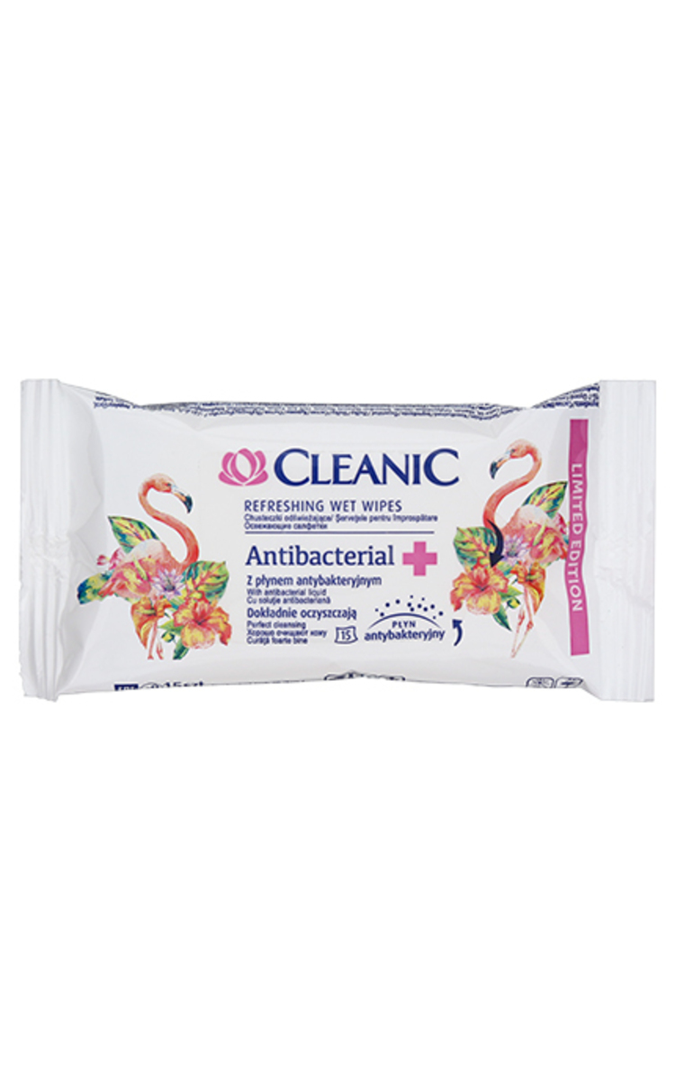 CLEANIC, ANTISEPTIC, drėgnos antibakterinės servetėlės, 15 vnt. 1 vnt.
