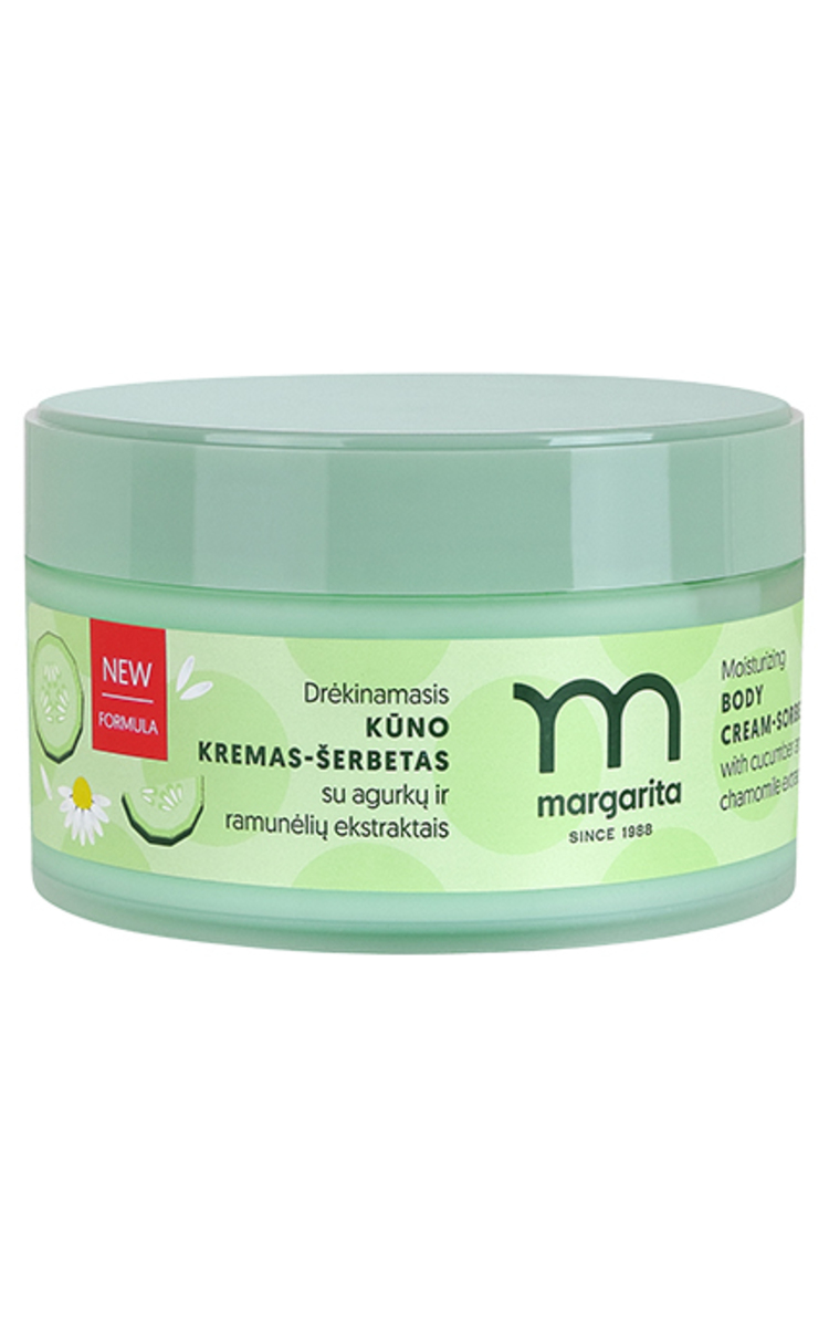 MARGARITA, drėkinamasis kūno kremas-šerbetas su agurkų ir ramunėlių ekstraktais, 250 ml 250 ml