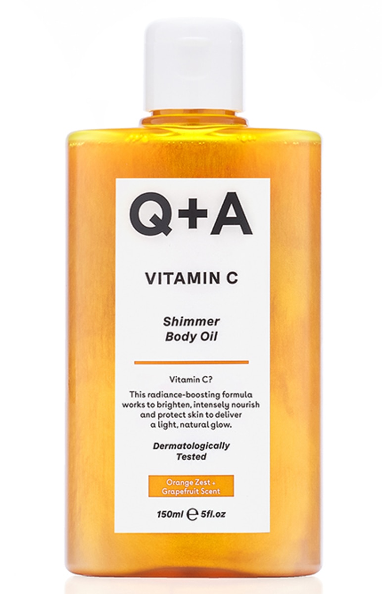 Atsiliepimai Q+A, VITAMIN C, SHIMMER BODY OIL, žėrintis kūno aliejus, 150 ml.