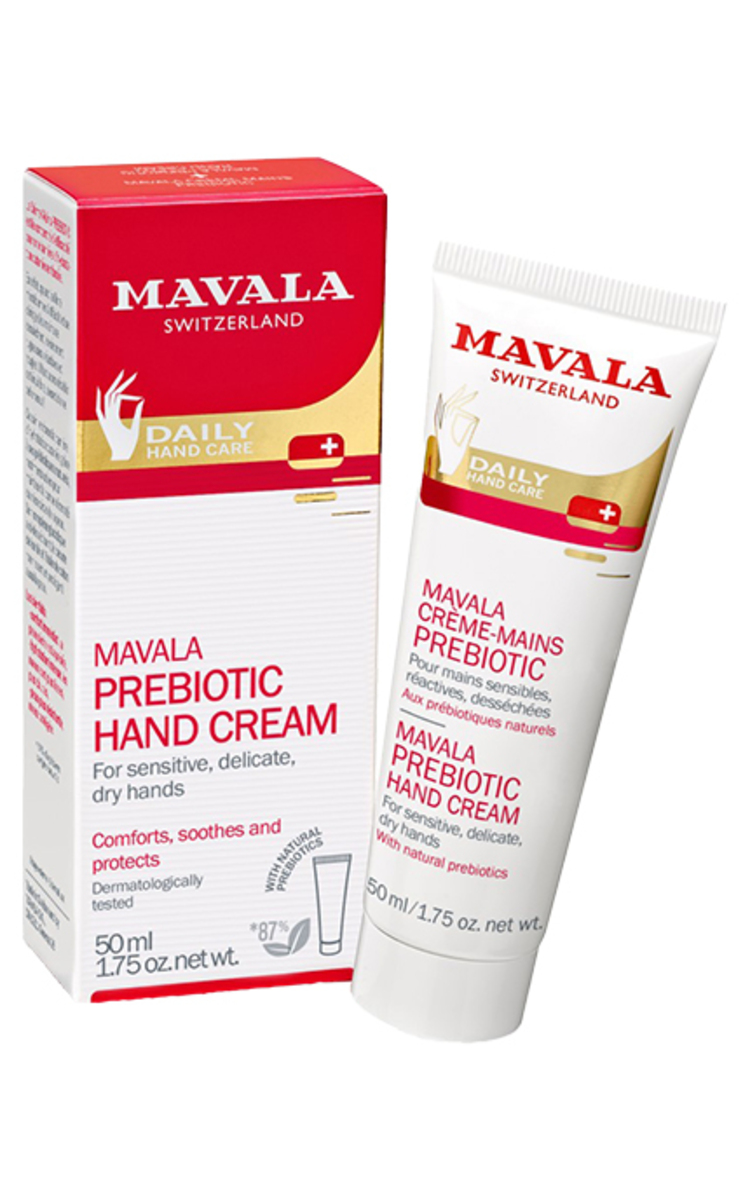 Rankų oda - priešakinėse linijose, ji kasdien kenčia dėl nuolatinio plovimo ir (arba) dažnos dezinfekcijos ar net dėl buitinių produktų tvarkymo be apsauginių pirštinių. Pažeidžiama jos mikrobiota, oda išsausėja, parausta, tampa šiurkšti, atsiranda senėjimo požymių. MAVALA prebiotinis kremas suteikia rankoms būtinų maistinių medžiagų, kurios palaiko odos pusiausvyrą ir mikrobiologinį aktyvumą, sudėtyje esantys natūralūs prebiotikai - jogurto ir inulino derinys - išsaugo subalansuotą mikrobiotos įvairovę. Šį prebiotikų poveikį papildo nuo išsausėjimo saugantis gliucidų kompleksas, taukmedžio sviestas ir medvilnės aliejus, turintys maitinamųjų ir apsauginių savybių. Ši meistriška priežiūra ramina tempimą, mažina paraudimą ir iš karto suteikia komforto net ir jautriausioms rankoms. Rankos vėl tampa švelnios, minkštos, puikiai sudrėkintos, apsaugotos subalansuotos floros bei sustiprinto odos barjero.