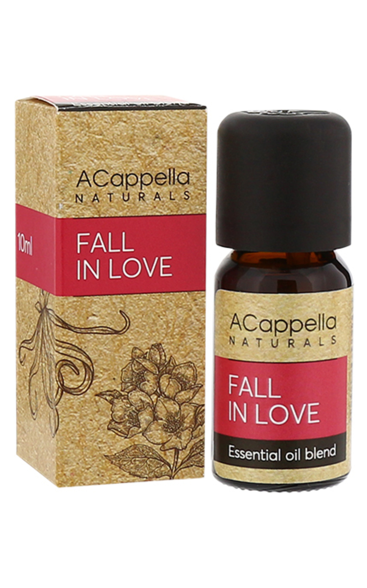 Atraskite stimuliuojantį ir atpalaiduojantį „Fall In Love“ eterinių aliejų mišinį. Mišinyje esantys aromatai, kurių dalis yra afrodiziakai, sužadina jausmus, gali padėti mažinti nerimą bei įsitempimą, suteikti pasitikėjimo savimi ir nuteikti teigiamai.Sudėtyje esantys aliejai yra gaivūs ir maloniai nuteikiantys. Kanangų eterinis aliejus sužadina jausmingumą, jautrumą, didina pasitikėjimą savimi, yra stiprus afrodiziakas, žinomas kaip turintis harmonizuojantį poveikį moterims. Jazminų ekstraktas turi atpalaiduojantį, pakylėjantį ir jausmus sukeliantį poveikį. Pačiulių eterinis aliejus sustiprina jausmingumą, ryžtą, pasitikėjimą savimi, atgaivina bei sumažina šaltumą. Gvazdikėlių eterinis aliejus veikia gaivinančiai, stimuliuojančiai, padeda atsipalaiduoti ir mažinti stresą.